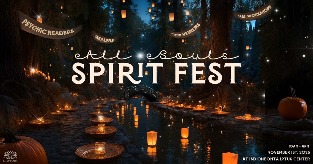 SAVE THE DATE!! All Souls Spirit Fest WHEN: Sat. Nov. 1st, 9:30 am - 4pm WHERE: ISD Lotus Center 297 River St., Oneonta, NY WHAT: Yay for Fairy Hair! Authentic Psychic Readings, check your astrology, get a henna tattoo, check out our vendors, rejuvinate with energy healers, home-made harvest soup, muffins & baked goodies. Schedule ahead for Personal Psychic Readings and energy healings with tried & true practitioners for only $30. Free Workshops!